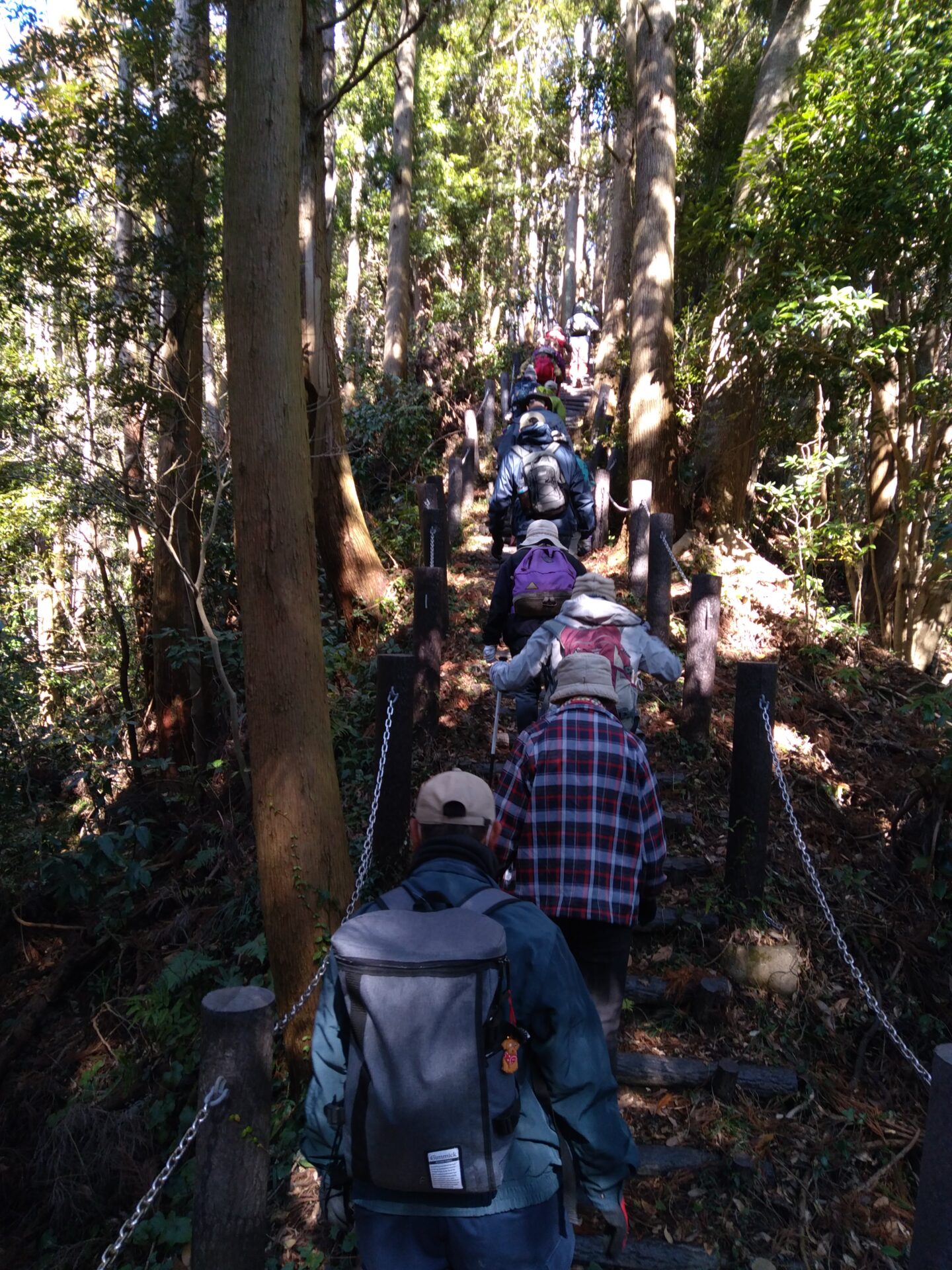 大峰山を経由しての御殿山(一説として日本武尊が東征し、安房の国を平定するとき四方を一望できる山の頂上に御殿を造ったとの伝説から御殿山と云われる)は木々の中の山道は良く整備されていて登り易く、途中や山頂の展望も含めてみなさんは登山を楽しまれました。