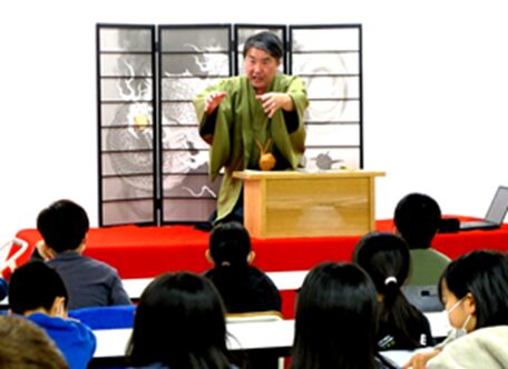 1月31日、富山学園4年生が地域を学ぶ総合学習「富山学」の一環で、安房地域を中心に落語や講談で活躍している「南房総三龍亭」を講師に招き、講談「南総里見八犬伝」教室を開催しました。