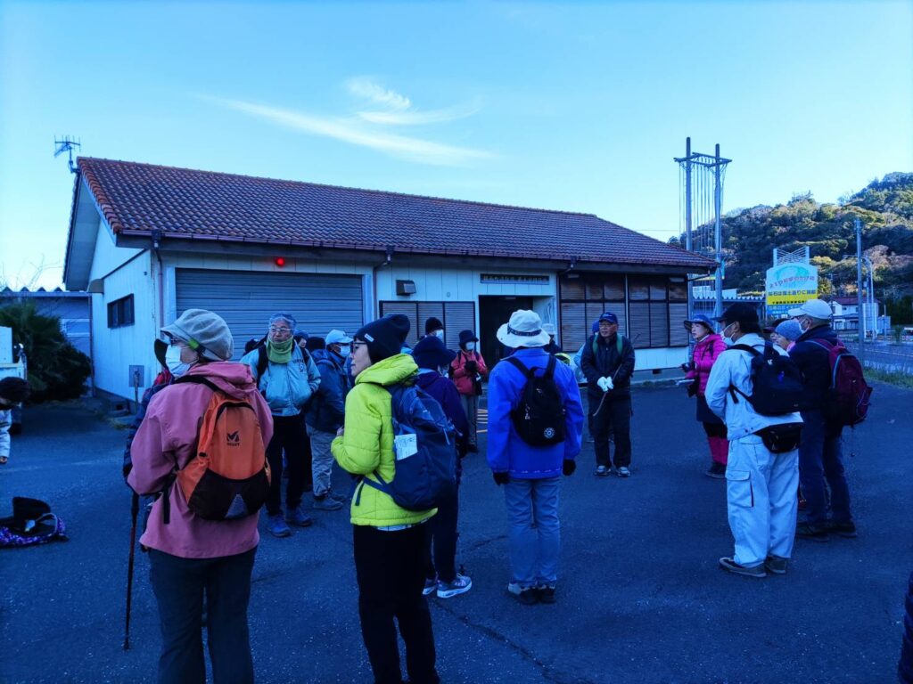 集合場所出発(鋸南町中央公民館前の「道の駅きょなん」)→変則十字路→足立区自然の家下経由→渋沢栄一の石碑→鶴ヶ浜八幡神社前経由→信福寺→鶴ヶ浜八幡神社→天王橋→川沿いの道→変則十字路→集合場所(11時50分頃解散)