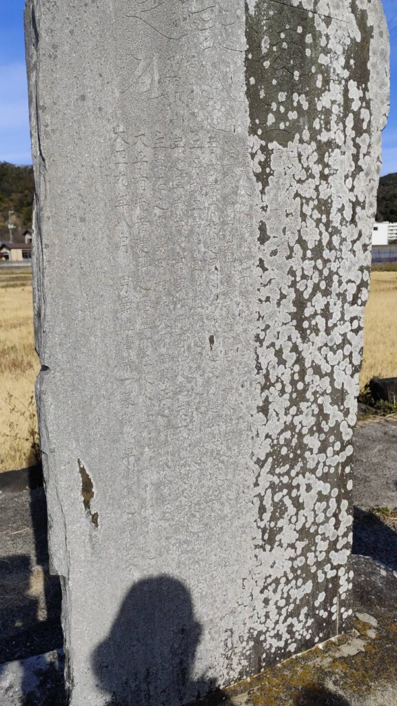 「溜池竣工記念之碑」の渋沢栄一籇額(てんがく)記載部分