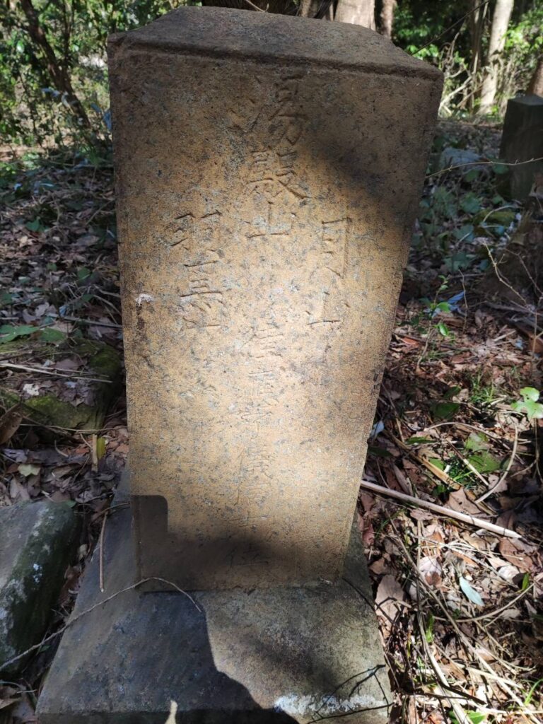 上ノ台には文化11年(1814)の馬頭観音や文化5年(1811)の出羽三山塔碑2基と5大明王の降三世明王(安房では数少ない)の文字塔があります。(5大明王は、密教の仏で、不動明王を中心に四方に配された明王。中央=不動明王、東=降三世明王、南=軍茶利明王、西=大威徳明王、北=金剛夜叉明王)