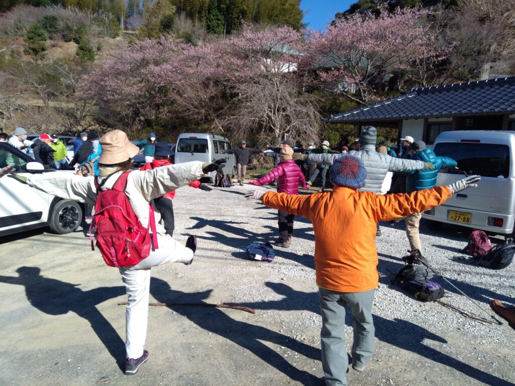 いつもの出発前の体操中!