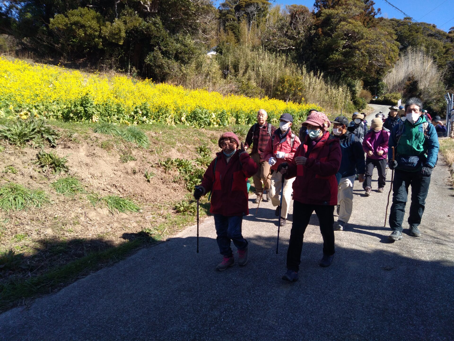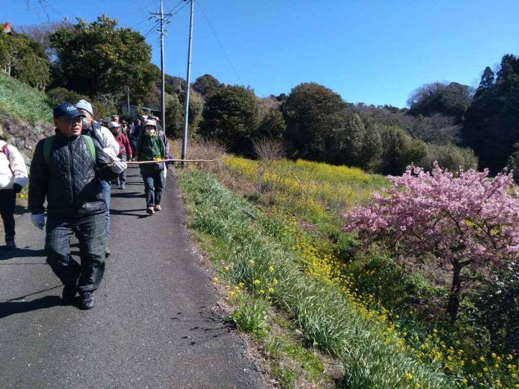 当日は千葉からの可愛い女の子も参加され、小春日和の中、皆様、途中途中の説明を聞き、ダジャレ漢字クイズに答え、途中の菜の花や早や咲き桜等を鑑賞しながら元気にワイワイガヤガヤとウオーキングを楽しまれました。