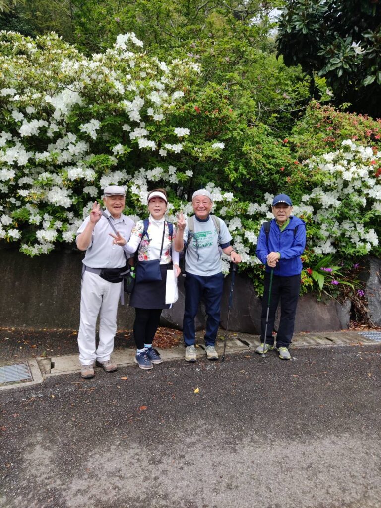 今回は当初予定であった4/23(水)が雨のため、翌日の4/24(木)の曇り空の中、途中途中、川名修さんの史跡説明やクイズ、おやつを楽しみながら、皆様は元気にワイワイガヤガヤとウオーキングを楽しまれました。