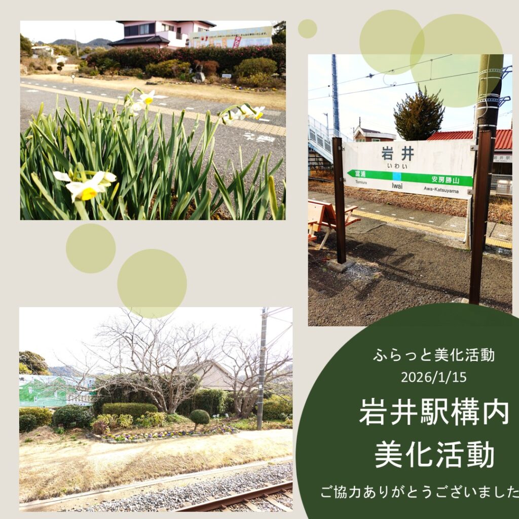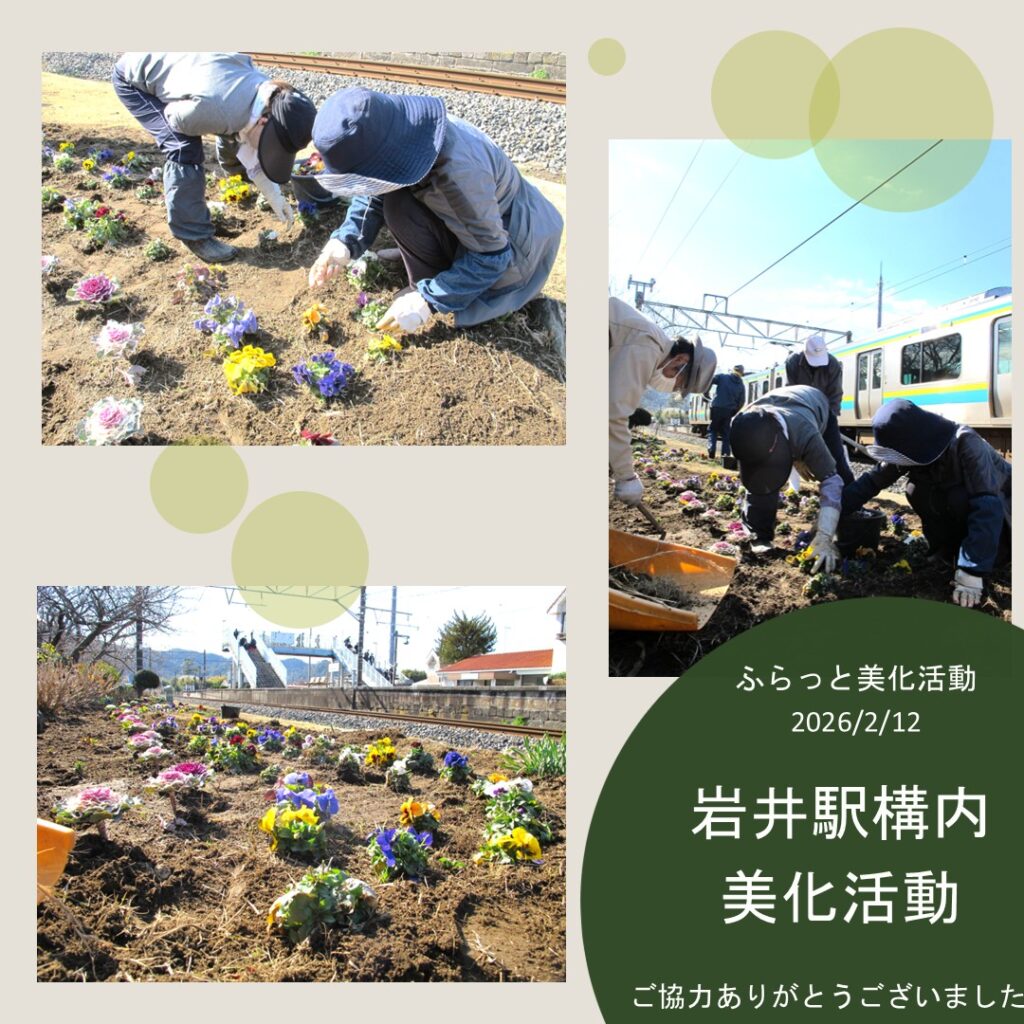 ふらっと通信第177号で、毎月第二木曜日に実施している岩井駅構内花壇周り